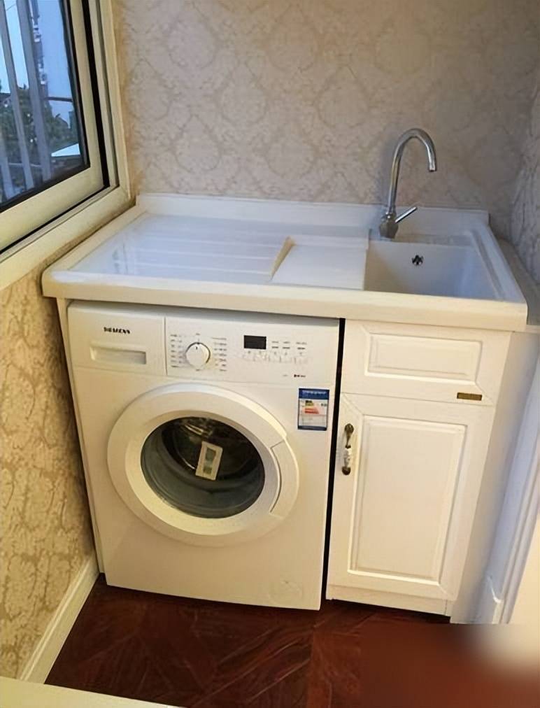 倒是阳台那成品洗衣池选得聪明,刚好嵌下洗衣机,小阳台就得这么“抠”空间,这点我得给儿媳点个赞。